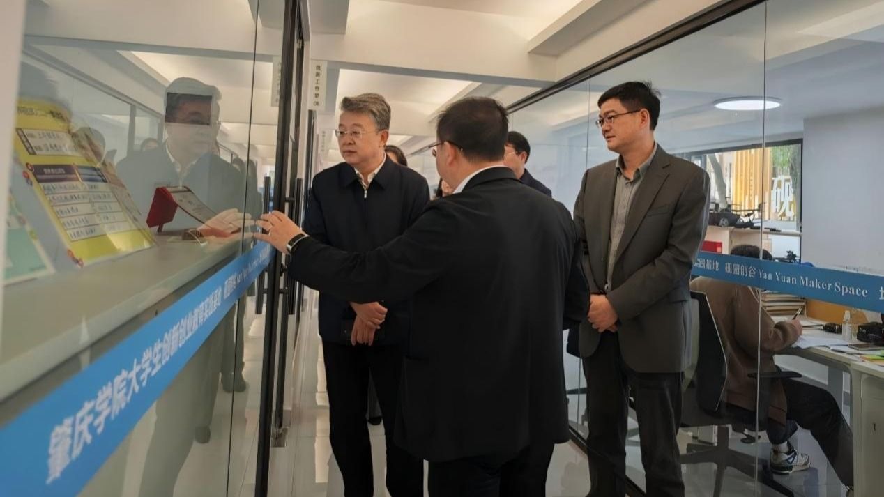 在砚园创谷,创新创业学院副院长叶非华简要介绍了近年来学校创新创业教育工作成果、基地建设情况和入驻团队风采。来宾与大创新工作室的入驻学生团队近距离交流互动,了解食品饮料深加工技术、端砚技艺传承创新、校园文创品牌开发等大学生创新创业项目,就技术细节、市场前景、产学研用等问题与师生展开了讨论。