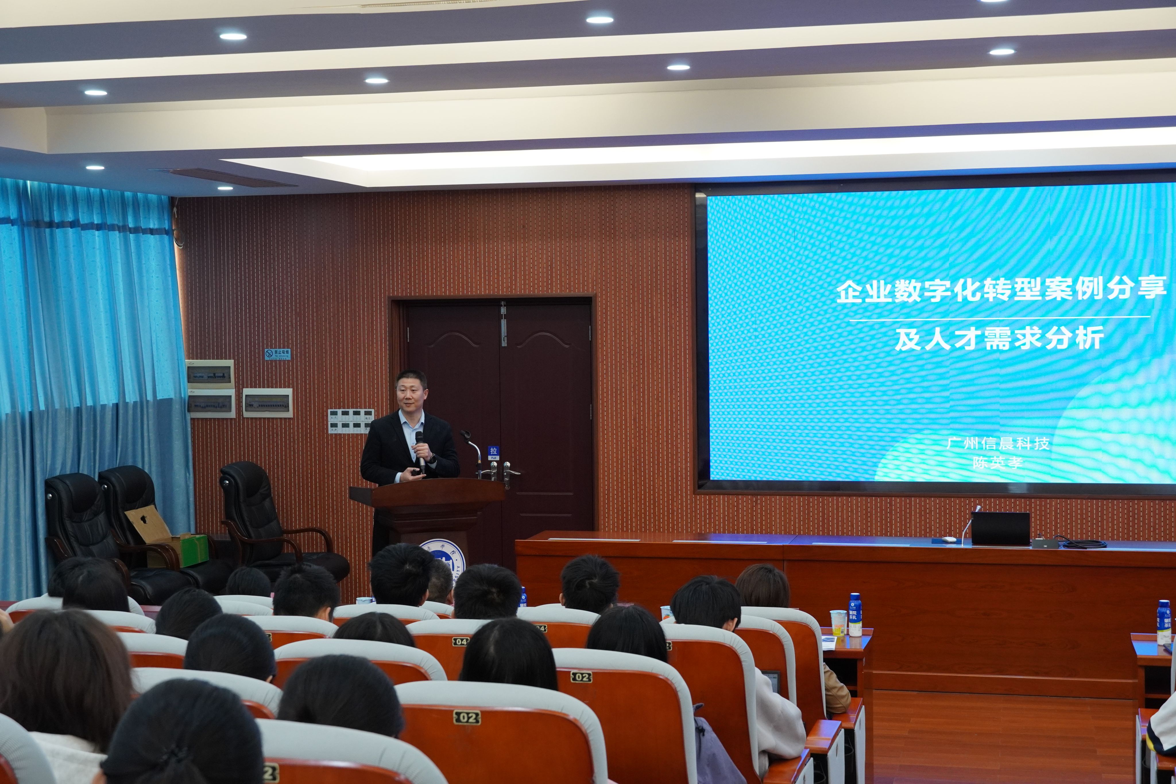 本网讯 12月14日,创新创业学院举办的“创业导师进校园”主题讲座在第二会议室进行。信晨科技总经理联合创始人陈英孝讲述“企业数字化转型案例分析及人才需求分析”,广发银行肇庆分行金融部总经理孙丽萍分享“银行的职业环境和就业指导”。经济与管理学院、计算机科学与软件学院、创新创业学院的师生代表,砚园创谷入驻团队,大学生创新创业协会成员参加。