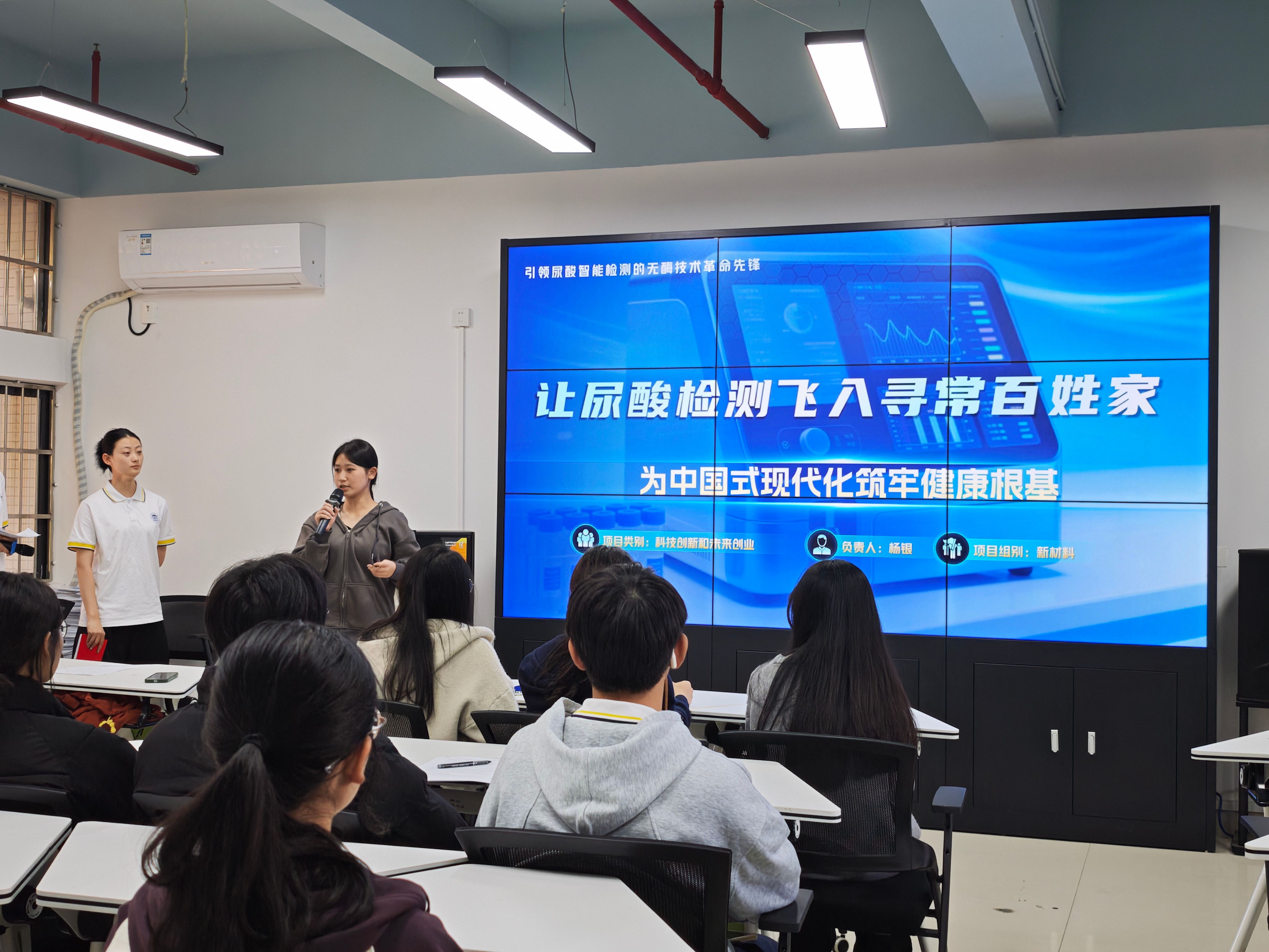 在大赛的舞台上,大学生创新的目光从实验室望向了更广大的实际需求,点燃了他们将技术推向应用、用创新服务社会的火种。获得国赛铜奖的《无酶智测——引领尿酸自然检测的无酶技术革命先锋》项目和入围总决赛的《柔焦视界——面向机器视觉等智能光学设备的多机制驱动胶体透镜》项目,其团队成员分别就其关键技术、参赛体会与成长过程展开阐述,分享了他们如何将平日科研积累和学科专业知识落地转化为创新成果和社会价值。与会学生踊跃发言,围绕跨学科团队组建、备赛瓶颈、技术开发等问题展开提问与深入交流。团队成员结合自身的参赛经历,给予了细致的解答和建议,现场反响热烈。