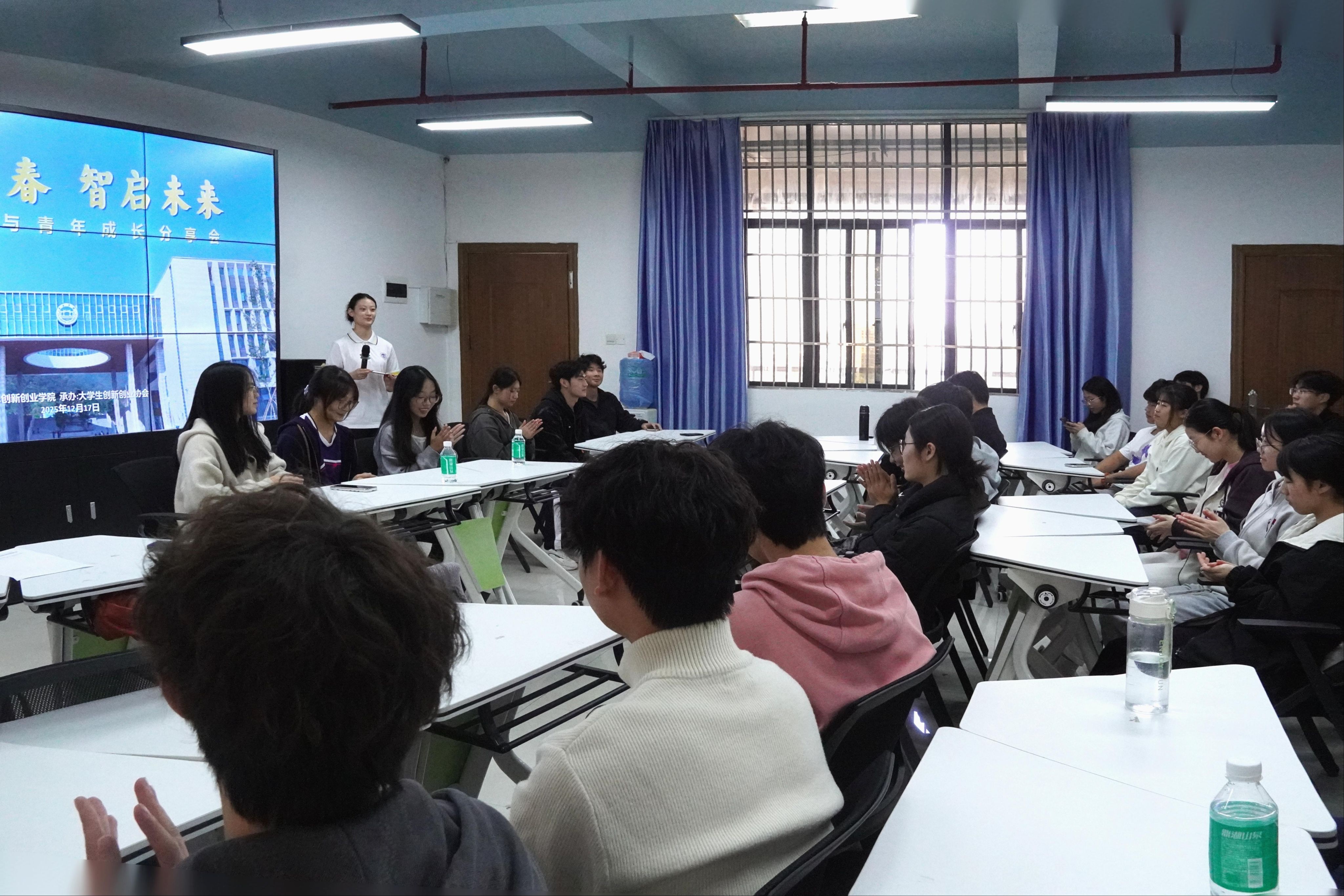 本网讯 12月17日,由创新创业学院主办、大学生创新创业协会承办的“创享青春 智启未来”——大赛经验与青年成长分享会顺利举办。本次分享会邀请中国国际创新大赛(2025)全国总决赛入围团队成员代表,为在场师生带来了一场启发深刻、干货满满的经验交流。